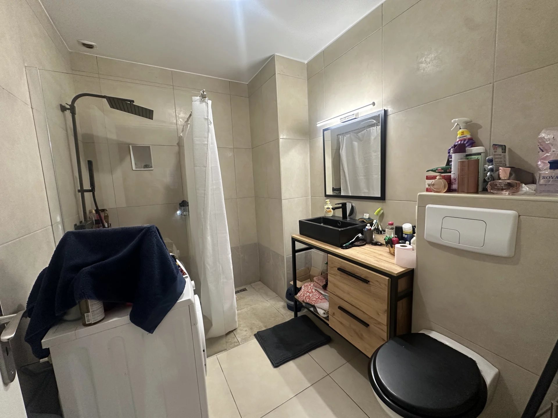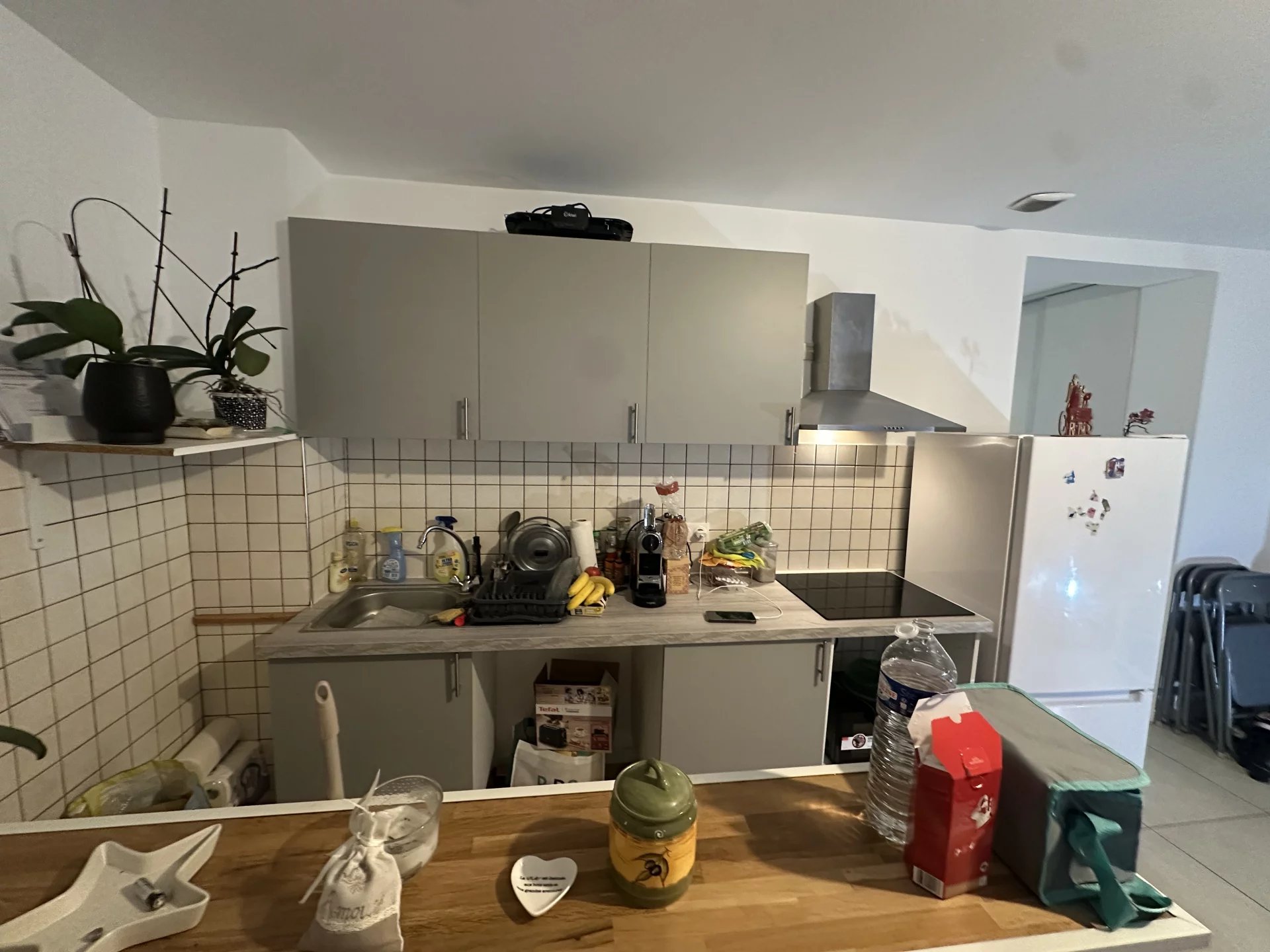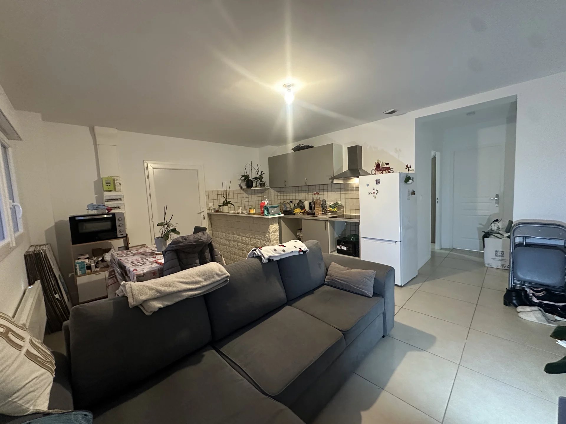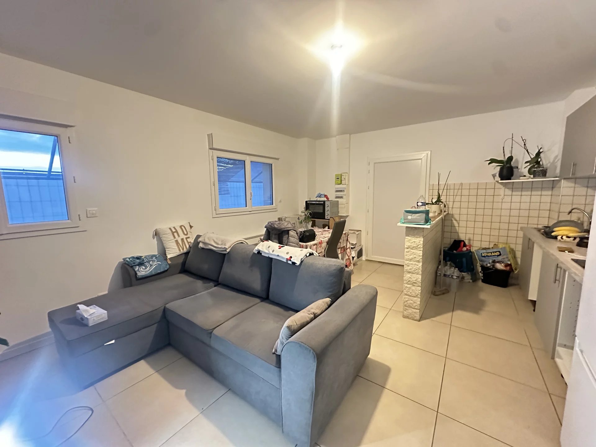 Au calme, en rez de jardin, 2p de 45 m² en bon état composé : d'un séjour avec cuisine américaine aménagée et équipée (plaque 4 feux et hotte), 1 chambre avec placard, 1 salle de douche avec wc.